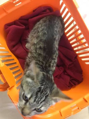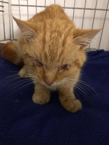 Seine Nierenwerte sind leicht erhöht und wir hoffen, dass sich diese wieder normalisieren, sobald er wieder aufgepäppelt ist. Er wiegt gerade mal 1,7 kg!